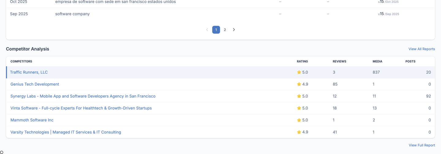 The Competitor Analysis section lets you compare your business performance directly against nearby competitors.