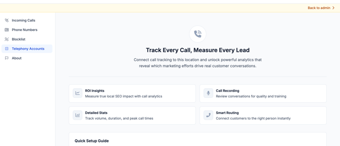 Once connected, your telephony account powers the phone numbers and call routing inside LocalOptics — giving you the flexibility to use your existing provider while benefiting from LocalOptics' call tracking and analytics layer on top.