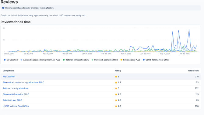 The reviews section gives you a full competitive breakdown of reputation performance, including: