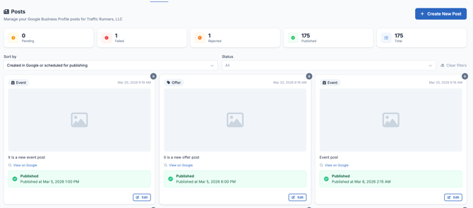 You can also see posts that were rejected or deleted by Google — which is important for staying on top of your content and understanding why something may not have gone live.